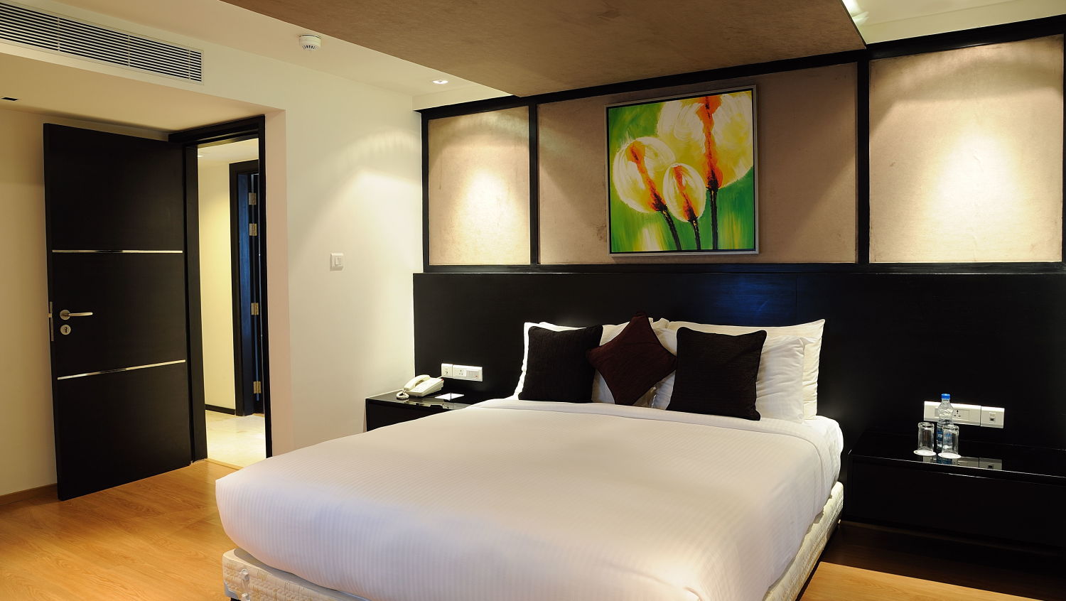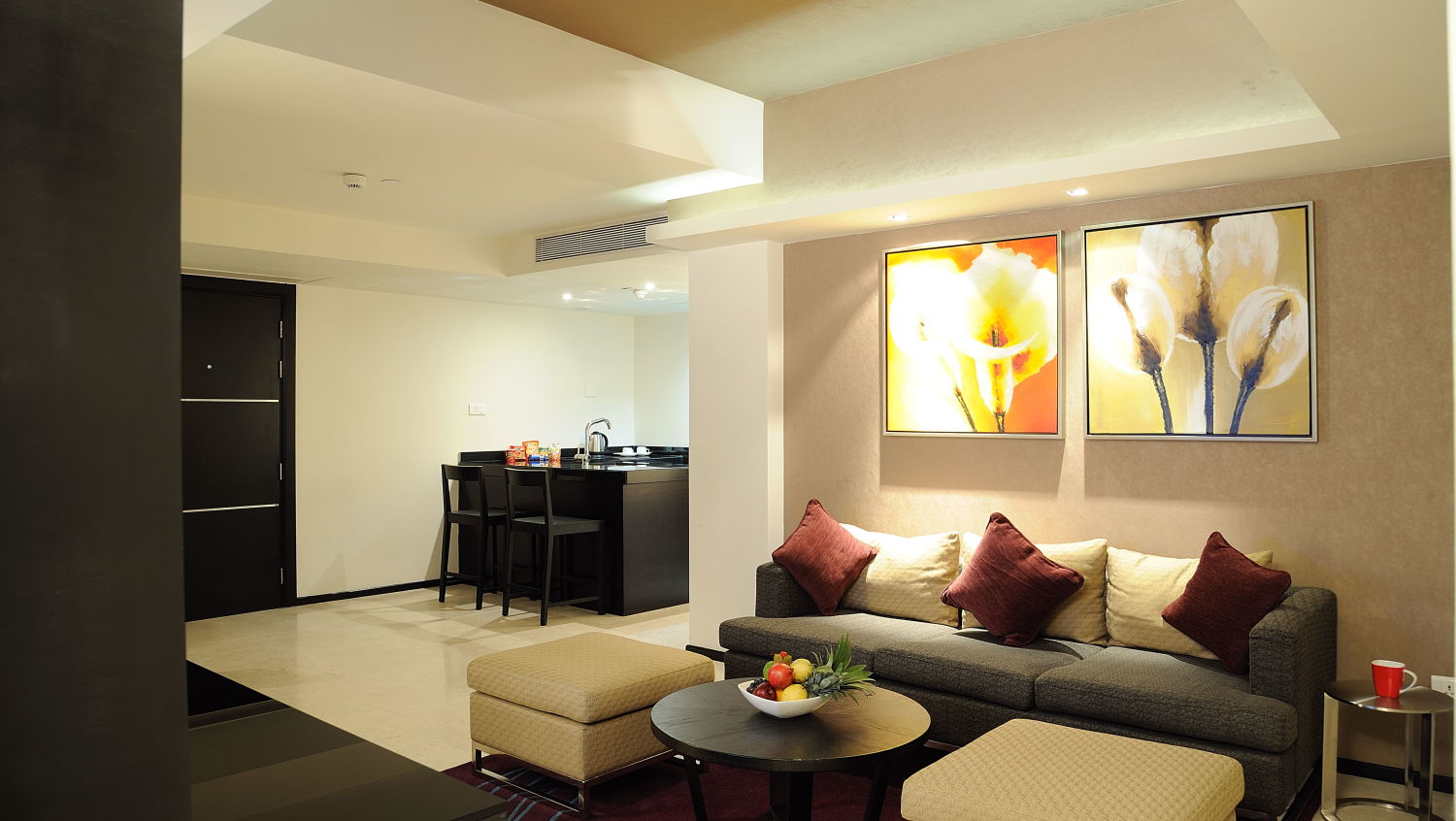 Davanam Sarovar Portico Suites, Bangalore, is an all-suite hotel on Hosur road. This premium business hotel in Bangalore is located close to major tech hubs and IT parks, and thus, a favoured choice for corporate travellers and executives. We pamper guests with the finest amenities and services in our three accommodation options — Executive Suite, Deluxe Suite, and Premium Suite. Tangerine, one of the best multi-cuisine restaurants in Hosur, and Gallop, our lounge bar, are ideal places to mix business and pleasure. Chefs at Fukusuke, our Japanese restaurant serve guests with specially curated delicacies. Our hotel also features three grand event venues in Hosur, which are ideal for meetings, conferences, and receptions. Indulge in rejuvenating therapies at our in-house spa, and enjoy your retreat without worrying about your toddlers because we provide responsible daycare services.