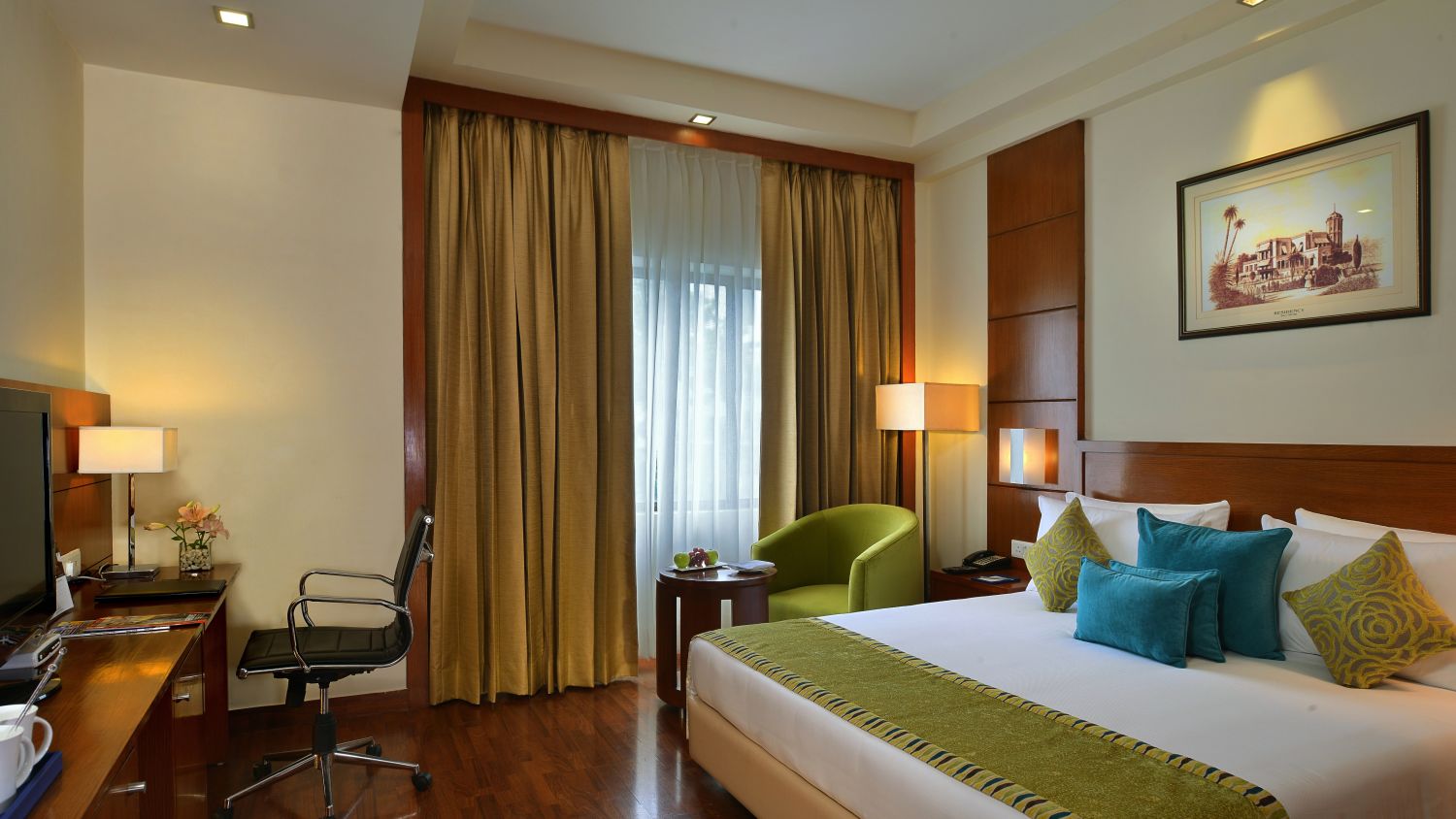 Golden Tulip is the first contemporary business hotel in Lucknow, located just about 2 km away from Charbagh Railway Station and around 13 km from Lucknow Airport. This 4-star hotel in Lucknow offers accommodation in four different room types and suites. These air-conditioned rooms and suites in Lucknow come with modern interiors and facilities, which include work desks, wardrobes, Wi-Fi accessibility, flat-screen TV, minibar, and ensuite bathrooms. We have pleasant dining options - Branche is a multi-cuisine restaurant, and Branche Bar is a lounge bar that serves Indian and international drinks of premium brands. Guests can have light snacks, beverages, and desserts at our cafe, Just Baked. Our hotel in Lucknow serves as an ideal location for corporate meetings and prestigious events. We offer six different banquet halls and conference halls, which are technologically equipped. The hotel offers a variety of facilities such as a fitness centre, spa, swimming pool, travel desk, and much more. We have a dedicated travel desk that will help you create itineraries and excursions to popular tourist destinations of Lucknow.