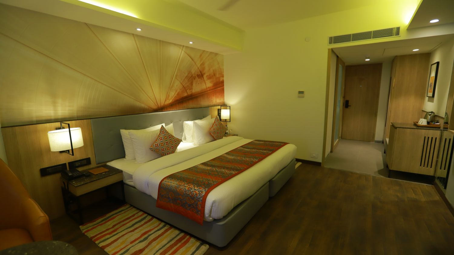 Hotel Facilities 3 categories of rooms 1 multi-cuisine restaurant & 1 bar 2 banquet halls Travel Desk Fitness Centre Pick-up and drop-off facilities