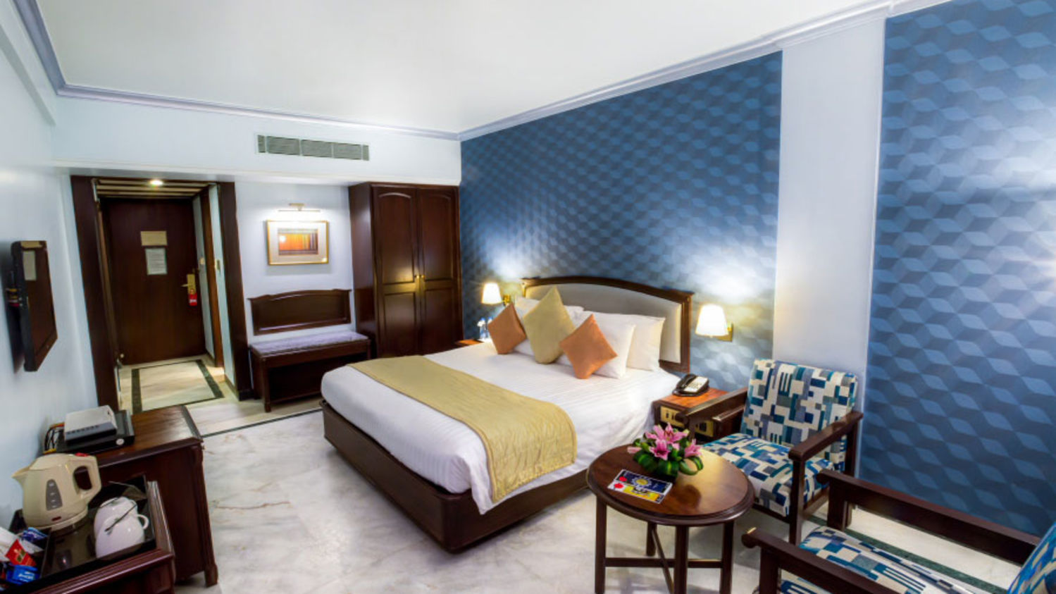 Hotel Facilities 3 spacious room categories 4 dining options: a multi-cuisine cafe, an Asian restaurant, a pub, and a lounge bar 5 banquet halls Fitness centre Airport transfer Travel desk
