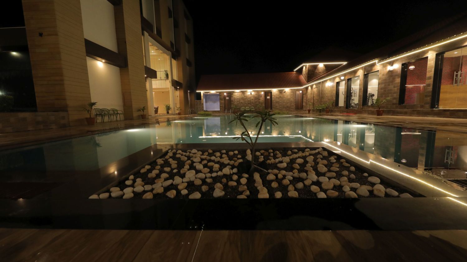 Hotel Facilities 100% sanitized rooms across 4 exclusive categories A multi-cuisine restaurant and a lounge Banquet space and a 6000 sq. ft. lawn Swimming pool Fitness centre Travel desk Currency exchange