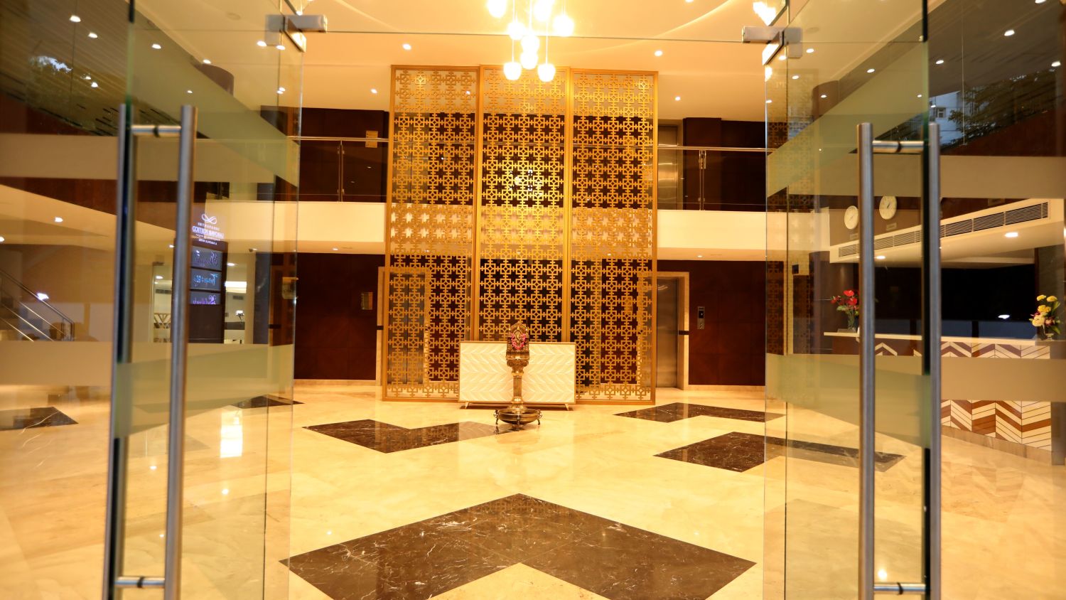 Hotel Facilities Spacious rooms across 4 categories A multi-cuisine restaurant and lounge bar 2 banquet halls measuring 700 sq. ft. and 3825 sq. ft., and a board room measuring 658 sq. ft. State-of-the-art gym with a health bar Railway station transfer Doctor on call Travel Desk