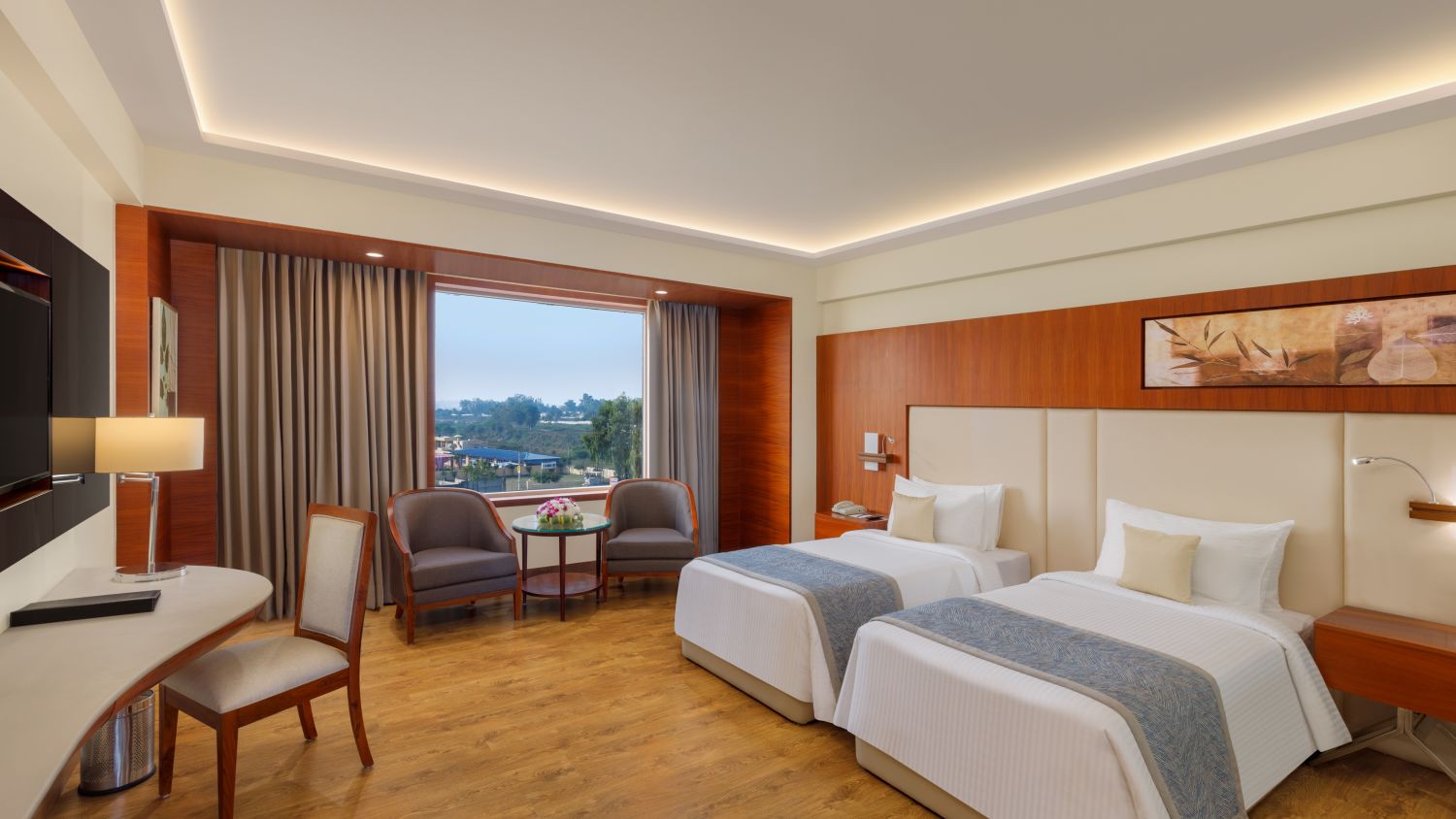Hotel Facilities 3 categories of rooms 3 dining options: A coffee shop, a bar, and a rooftop restaurant 4 banquet halls, a boardroom, and a lawn Secretarial services Doctor on call