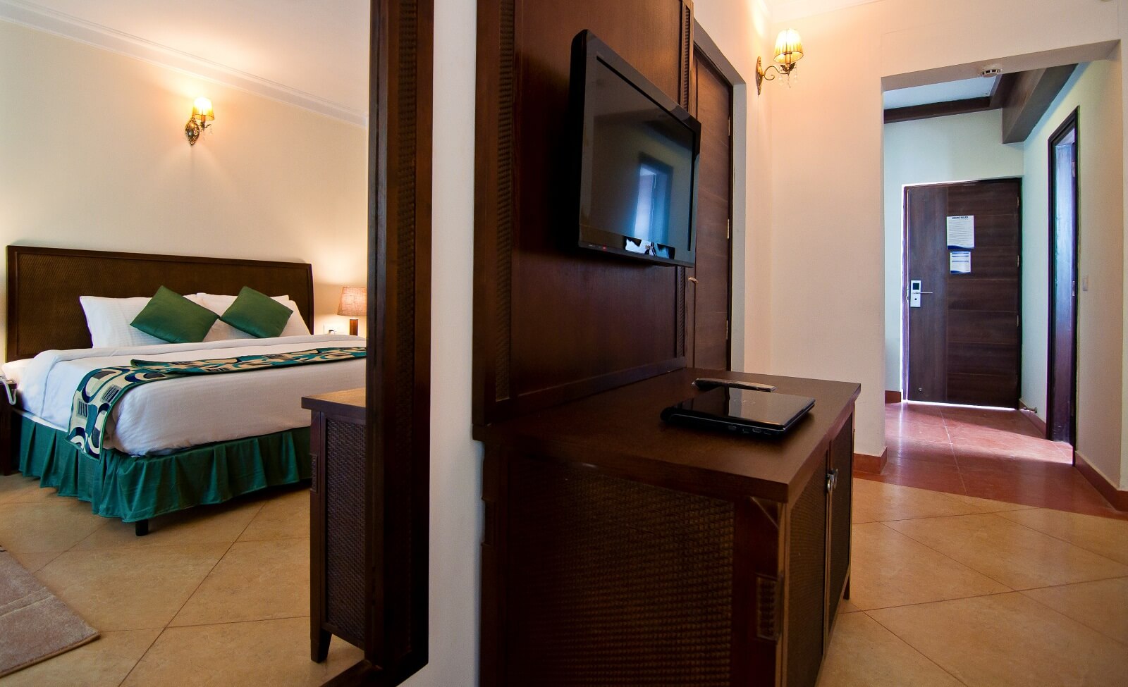 The Nagoa Grande Resort which is rated as a 5-star property is well-known for the warm hospitality as well as attentive services it renders. This extraordinary resort comprises of 65 luxuriously designed rooms, every one of which has been designed with great elegance. The Nagoa Grande Resort is further classified into two segments. The superior rooms are those rooms which comprise of the following: cable TV, telephone, air conditioner, hairdryer, tea/coffee machine and safe deposit lockers. Iron and ironing board are also provided if necessary.